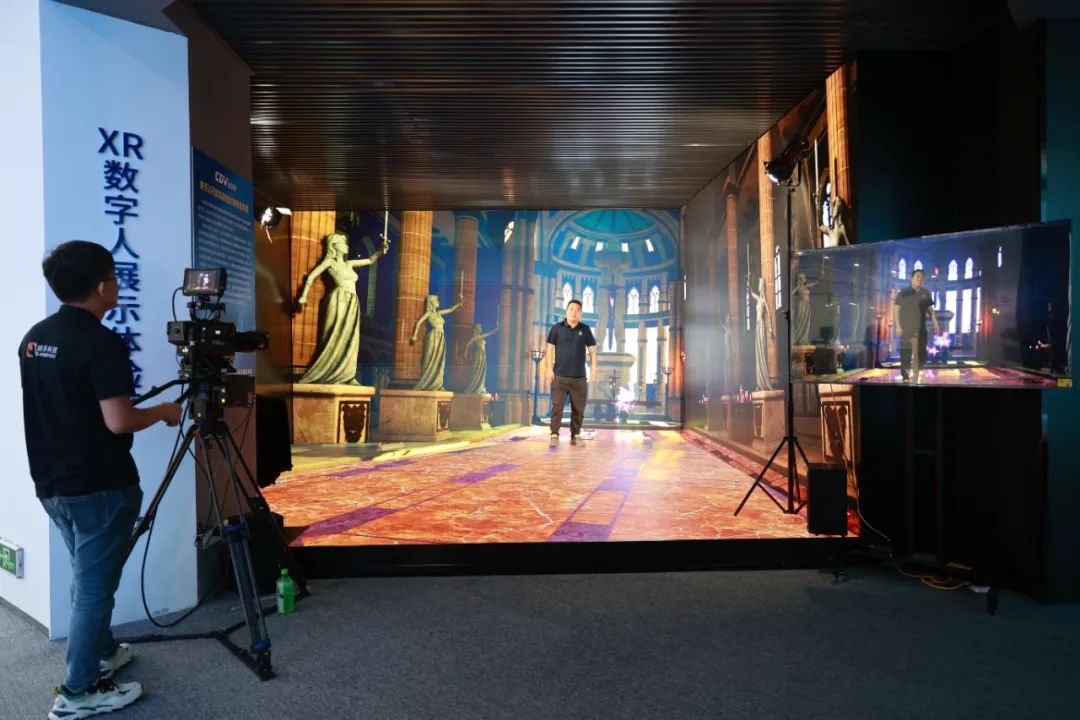 其中,由广州市工信局、越秀区政府、广州电视台、广州城投集团共同升级改造而成4K/8K+5G展示体验中心,采用了新奥特自主研发的超高清XR虚拟演播室系统,配合展区内的固定机位,摇臂、激光触控设备以及虚拟道具外设等设备,结合特效模板呈现突破性的创意效果。